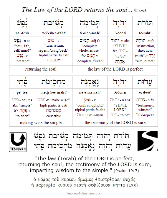 Hebrew Lesson Psalm 19:7 reading (click for audio):