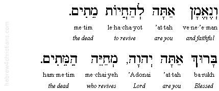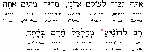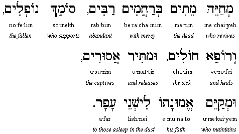 You, O Lord, are mighty forever, You are the Reviver of the dead, You are greatly able to save.* You sustain the living in lovingkindness, You revive the dead with great compassion, You support the falling, heal the sick, set free the bound and keep faith with those who sleep in the dust. Who is like You, O Master of mighty deeds? Who compares to You, a king who puts to death and restores to life, and brings forth salvation? And You are faithful to revive the dead. Blessed are You, O Lord, who revives the dead.